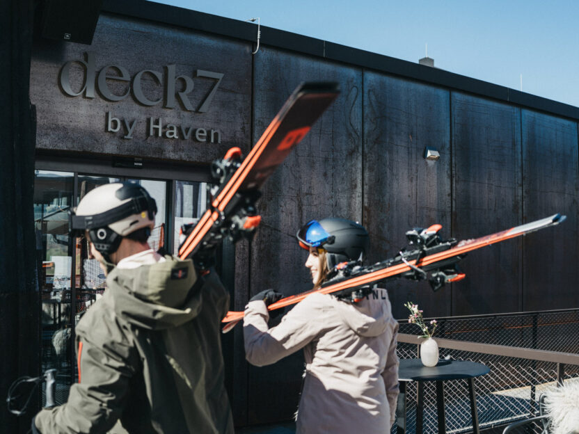 That’s right. You can take the elevator directly from our rooftop to the slopes. Ski in, ski out. Super convenient. For inexperienced skiers, the gondola station is only a few meters away from the ski cellar. Directly from the slopes to deck7 – après-ski at its finest, raise a glass and celebrate the day. Ski boots? You can keep them on.